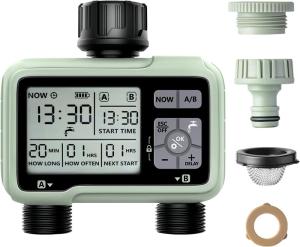 Lununux 2 Way Watering Timer, Programmable Garden Water Timer with Rain Delay, Garden Watering Timer...